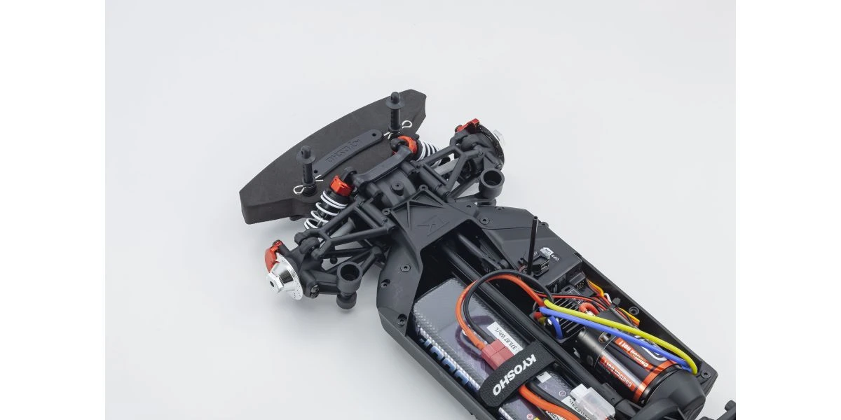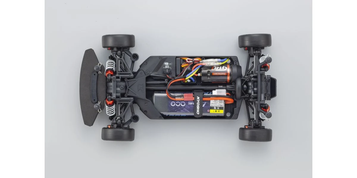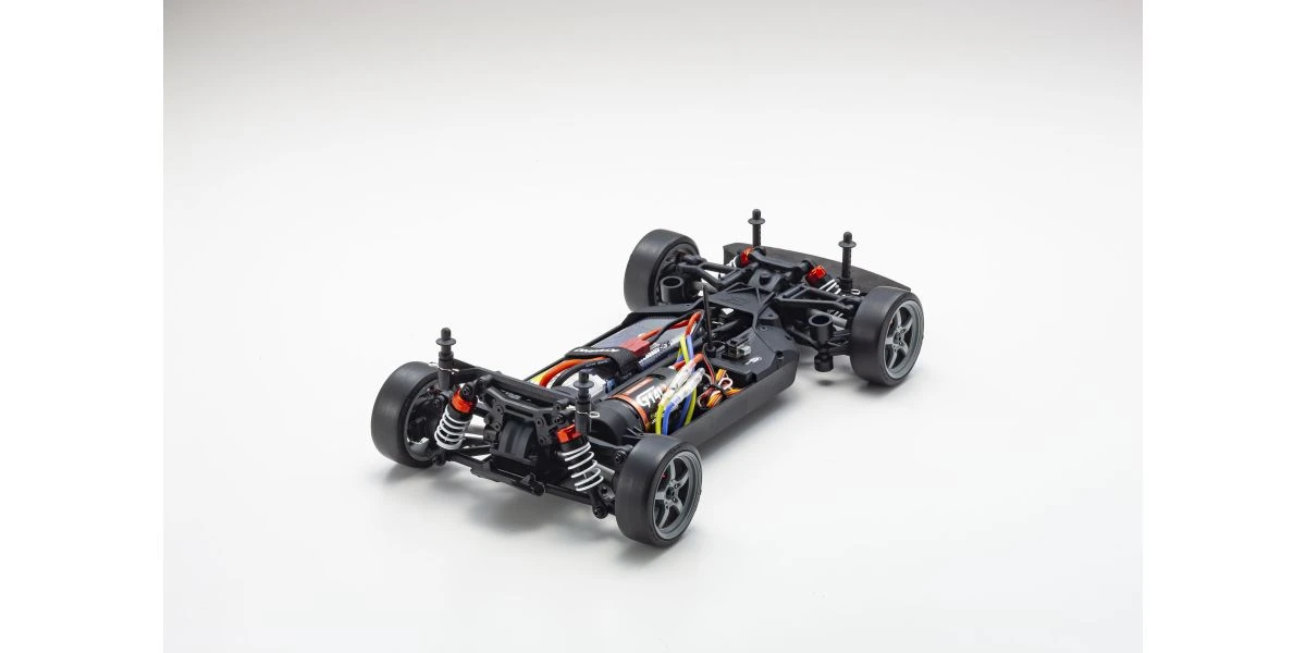 For the pure enjoyment of R/C car driving, the combination of a beautifully reproduced car body with the FAZER series chassis can’t be beaten. Kyosho has taken its standard touring car chassis and given it a full model makeover that has evolved performance to a new level. A simplified design with fewer parts has improved maintenance efficiency and reduced weight while core strength and rigidity has been increased through new materials and ribbing and stiffeners on front and rear. In addition, the symmetrical chassis design synergizes excellent front-rear balance through the suspension with responsive control, irrespective of power source. Featuring slipper clutch, front & rear gear differentials, oil shocks and full ball bearing specs, the high durability and impact resistance allows drivers to unleash the full potential of the chassis. Brake disc wheel hubs with two different offsets (0mm, +5mm) provide compatibility with 190mm and 200mm width body styles and allows the wheelbase to be adjusted to 274mm by replacing some parts (sold separately) for compatibility with other 1/10 scale body styles, in addition the body included. The Readyset package comes fully assembled and includes everything except charger and battery for the chassis, and batteries for the transmitter.