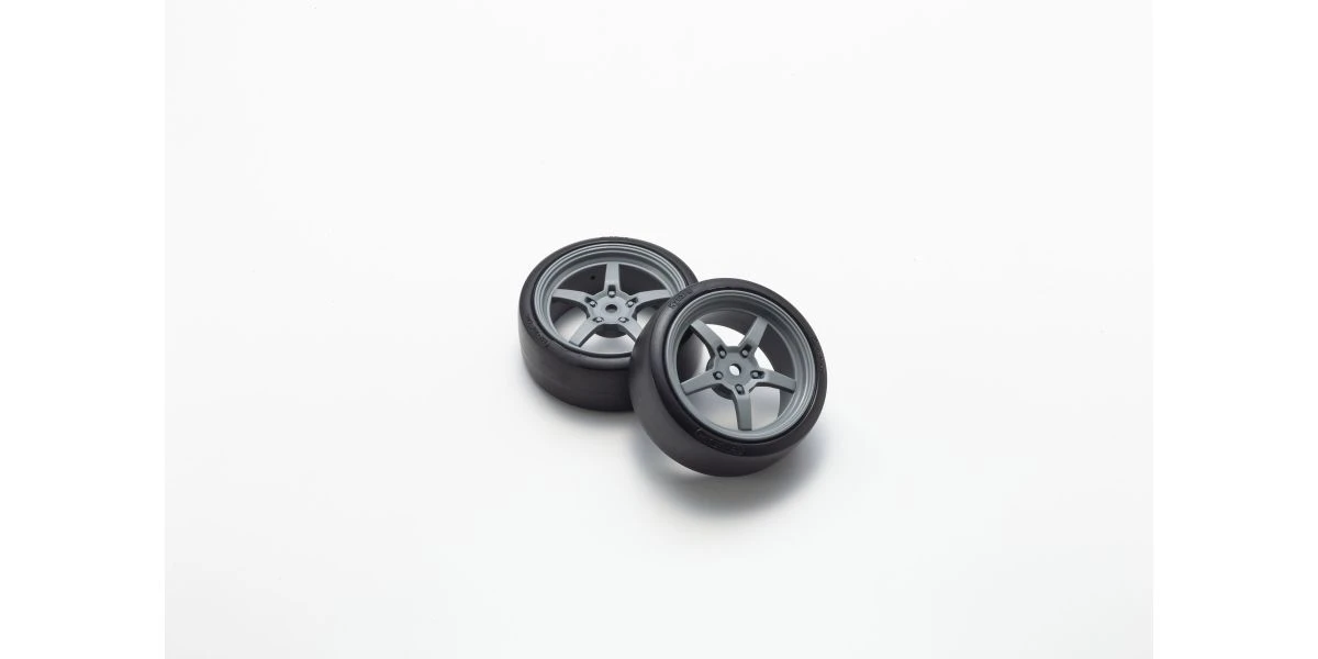 Hard plastic drift tires realizes controllable sliding performance, and equipped with white 5-spoke wheels on K mark logo to improve appearance.