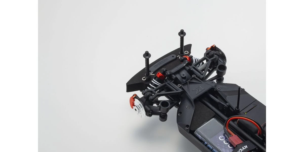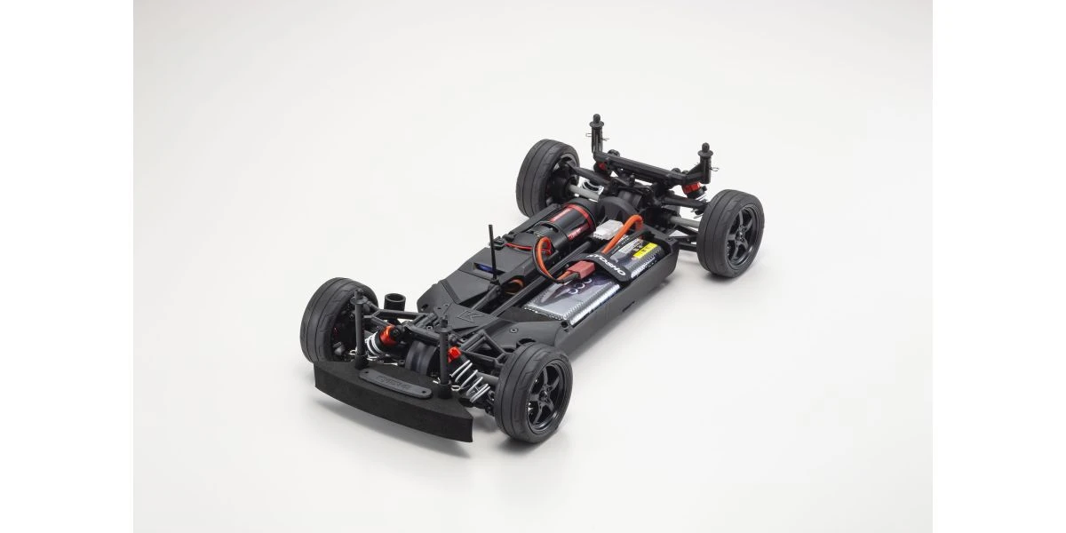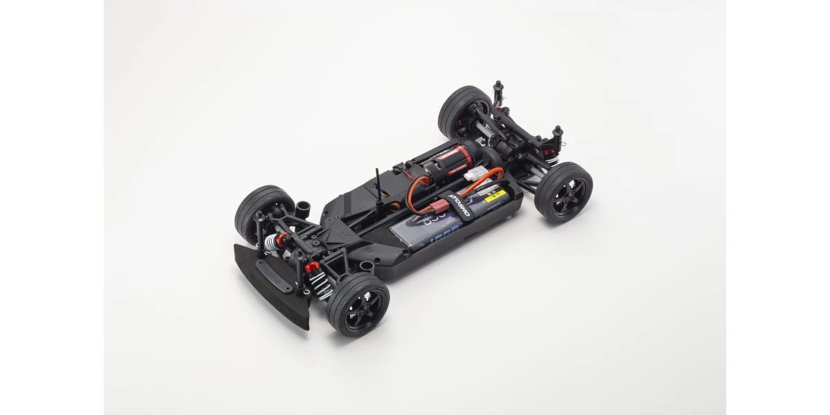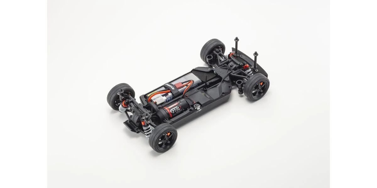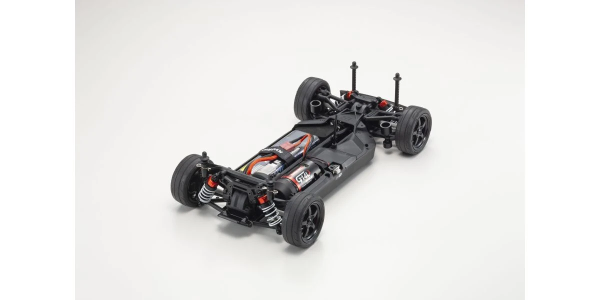 For the pure enjoyment of R/C car driving, the combination of a beautifully reproduced car body with the FAZER series chassis can’t be beaten. Kyosho has taken its standard touring car chassis and given it a full model makeover that has evolved performance to a new level. A simplified design with fewer parts has improved maintenance efficiency and reduced weight while core strength and rigidity has been increased through new materials and ribbing and stiffeners on front and rear. In addition, the symmetrical chassis design synergizes excellent front-rear balance through the suspension with responsive control, irrespective of power source. Featuring slipper clutch, front & rear gear differentials, oil shocks and full ball bearing specs, the high durability and impact resistance allows drivers to unleash the full potential of the chassis. Brake disc wheel hubs with two different offsets (0mm, +5mm) provide compatibility with 190mm and 200mm width body styles and allows the wheelbase to be adjusted to 274mm by replacing some parts (sold separately) for compatibility with other 1/10 scale body styles, in addition the body included. The Readyset package comes fully assembled and includes everything except charger and battery for the chassis, and batteries for the transmitter.