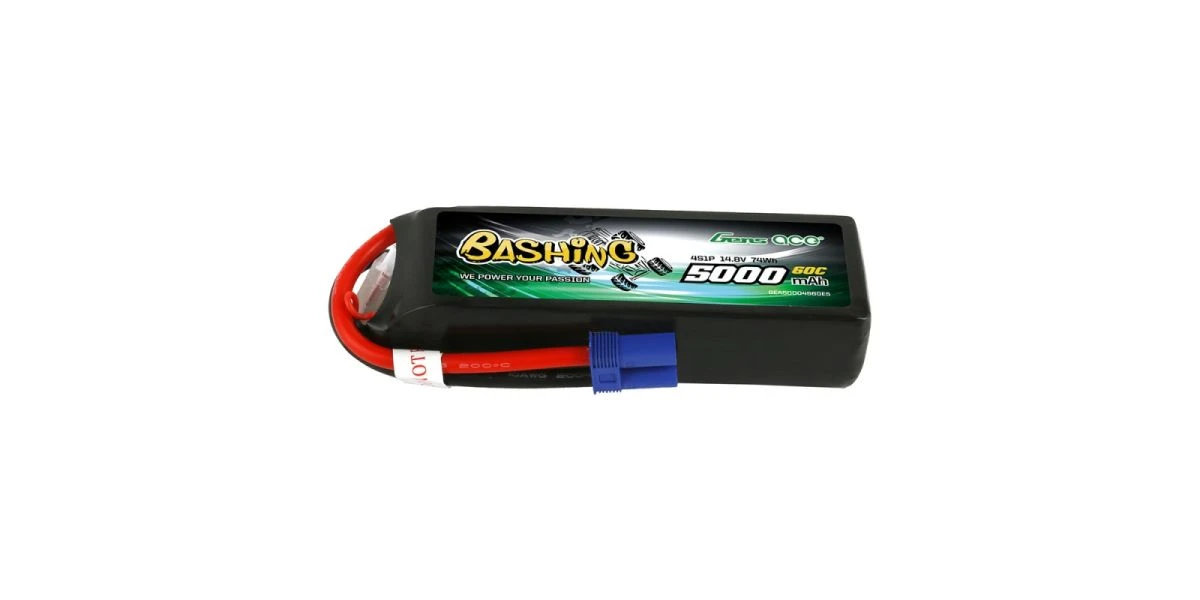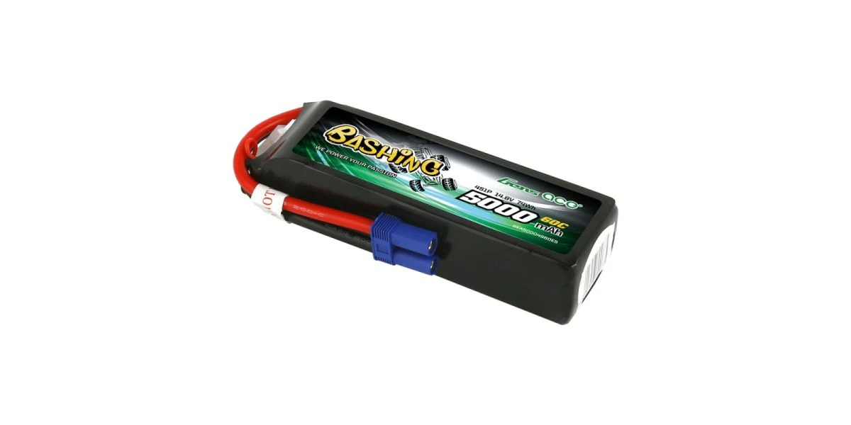 Gens ace 5000mAh 14.8V 4S1P 60C Lipo Battery Pack with EC5 Plug is Bashing Series, it is a great power for most 1:8 Scale Cars, and all ARRMA 1:8 Cars like Typhoon, Kraton, Nero, Senton, Outcast and similar cars like Losi dvxl-e.