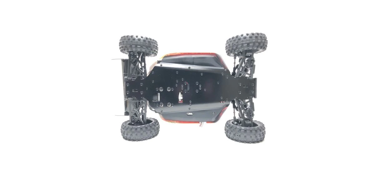 Race-bred chassis combines superior driving performance with durability and reliability. Also equipped with side guards to protect the RC system and muffler from crash impact.