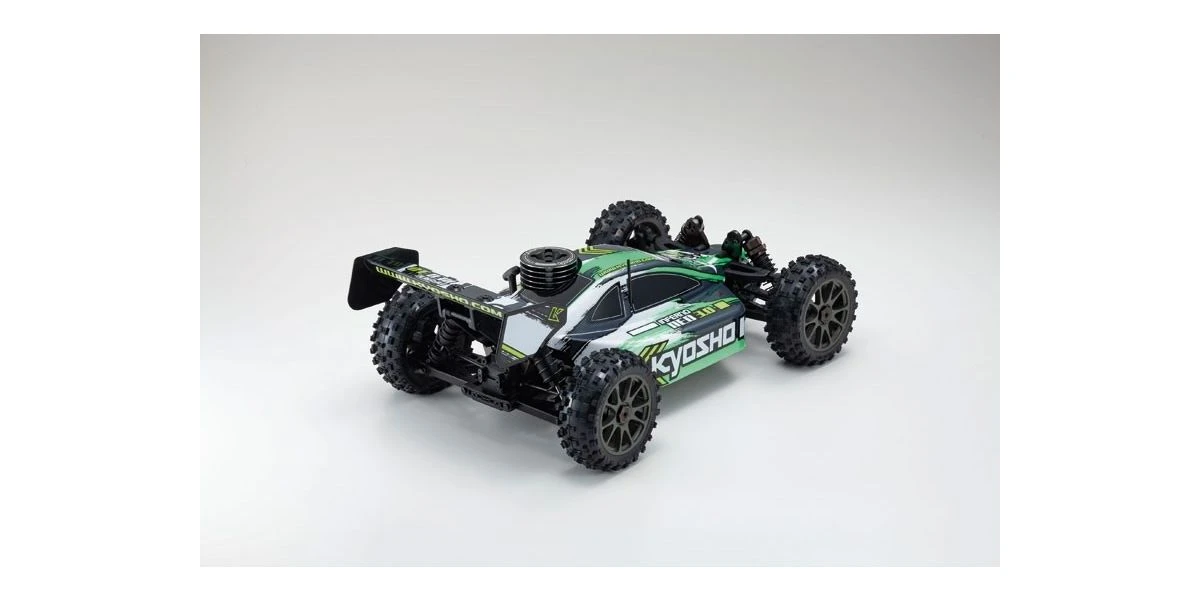 With 8 World Championship titles, the ‘Inferno’ is proud to be KYOSHO’s flagship model. Infused with Inferno DNA, the Inferno NEO 3.0 is ready to race almost as soon as it’s out of the box and brings the Inferno’s glorious performance potential within reach of everyone. While excelling on racing circuits, the NEO 3.0 also runs through rough terrain like a boss with features such as the user-friendly KE21SP engine with recoil pull starter and Big Bore Shocks with the omnipotent KC Cross Tires that deliver an optimal balance of performance and running stability on any surface. Based on the competition-level chassis, the NEO 3.0 promises exceptional reliability and durability plus wide scope for setting adjustments and custom performance upgrades through the huge range of optional parts available for the MP7.5 series. Experiencing the thrill of engine-powered off-road buggy racing has been made easy with the Inferno NEO 3.0!