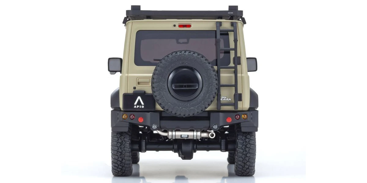 Designed in collaboration with Jimny Proshop Apio, the wild ride of the Jimny has been recreated with realistic front grill / front bumper / rear bumper / roof rack / rear ladder / rear number plate / Yoshimura muffler / wheels etc.