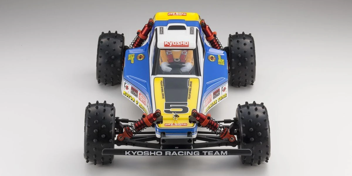 The first OPTIMA model was heralded as a technical masterpiece at its release in 1985 and from then, Kyosho has set the standard in R/C development. Memories of the OPTIMA are fresh even after 30 years and its stylish form and ruthlessly efficient performance still resonate amongst modern racing machines. Now the new OPTIMA is ready to continue the battle for racing dominance, embodying the latest in technological evolution but with the distinctive OPTIMA style. The narrow backbone shaped chassis provides the platform for optimal geometry with large steering angles and double wishbone suspension with long 35mm suspension stroke. Recreated in the image of the original design, the the 4WD chain system is housed inside a sealed compartment and the gears and gearbox at the center of the drive train are equipped with robust metal counter gear pinion and rear diff case. The drive train also features a slipper clutch and precision 48-pitch gear modules that reduce drive loss and fulfill the potential of modern power sources. Modern features include the choice of chain drive or belt drive as well as big bore shocks on front and rear that have been recreated in the original OPTIMA colors, plus hex screws. As a true racing partner, the OPTIMA is ready to race again with the latest advancements in driving performance.